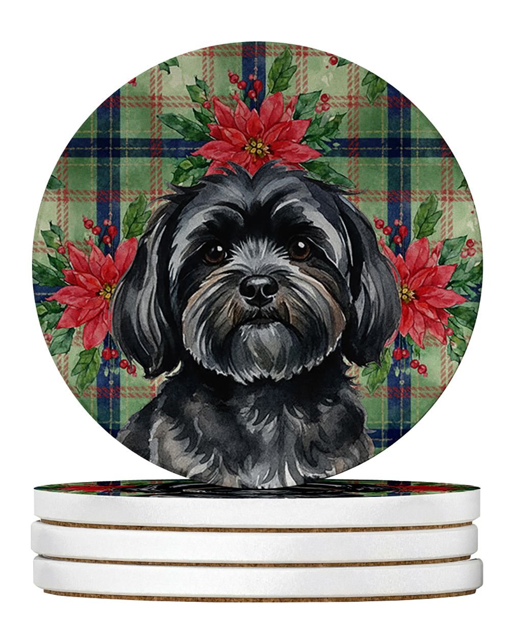 Home > Black Lhasa Apso Christmas PoinsettIas Large Sandstone Coasters Pack of 4 Absorbent Round Coasters Decor Gifts for Men or Women, 4 in, Multicolor