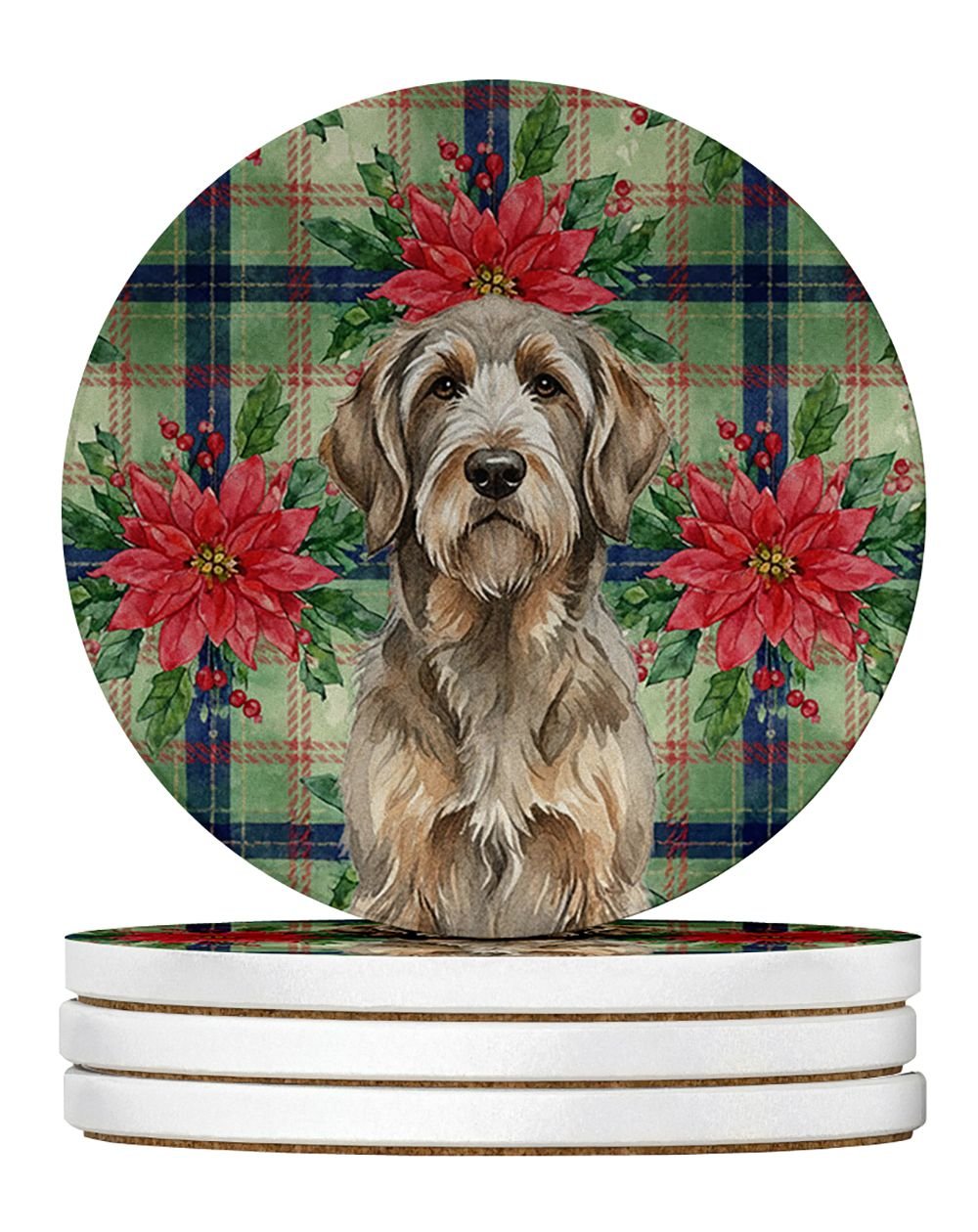 Grizzle and Tan Otterhound Christmas PoinsettIas Large Sandstone Coasters Pack of 4 Absorbent Round Coasters Decor Gifts for Men or Women, 4 in