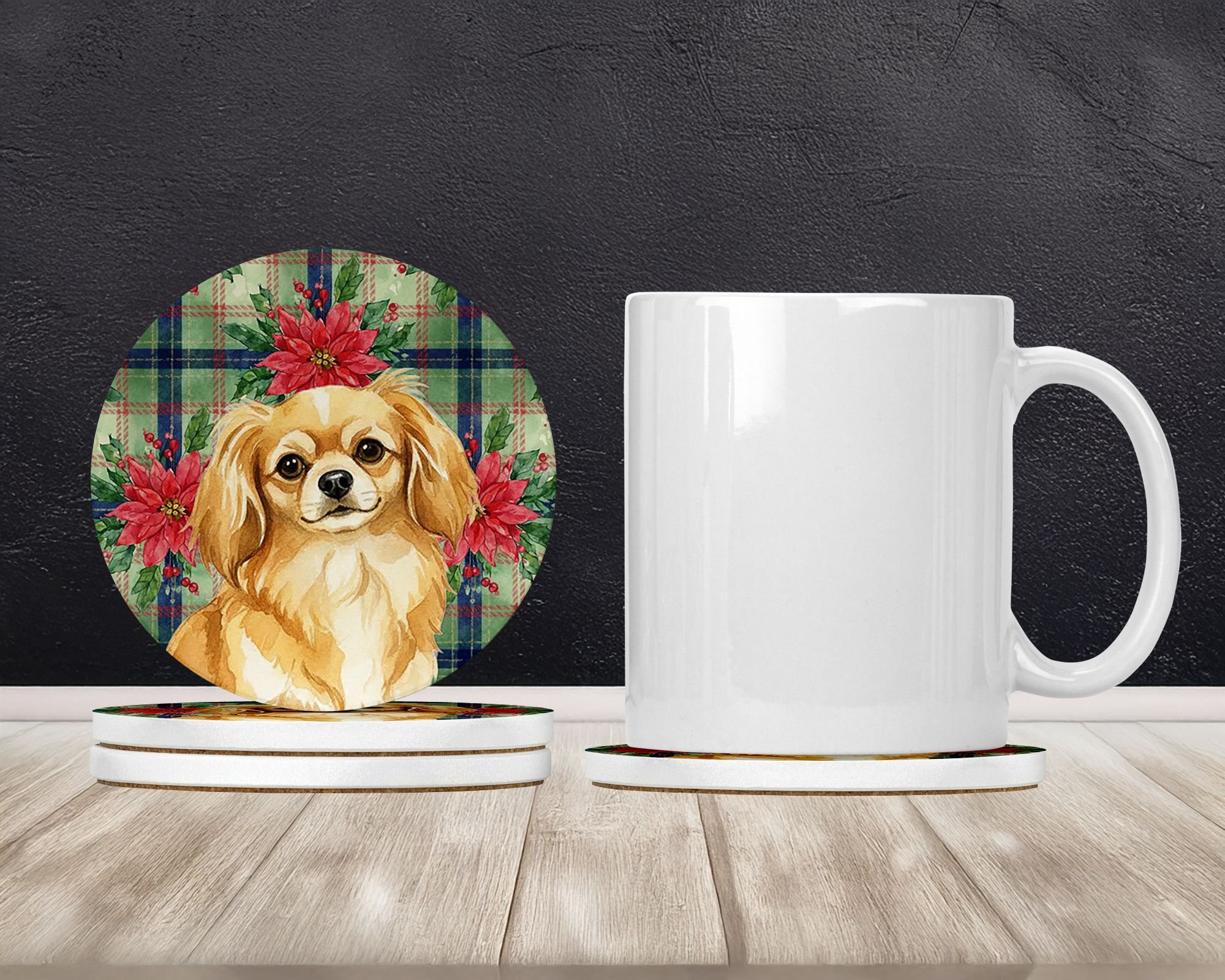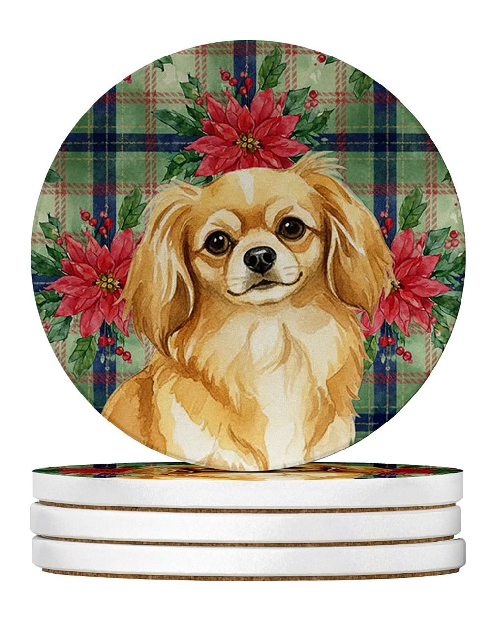 Home > Gold Tibetan Spaniel Christmas PoinsettIas Large Sandstone Coasters Pack of 4 Absorbent Round Coasters Decor Gifts for Men or Women, 4 in, Multicolor