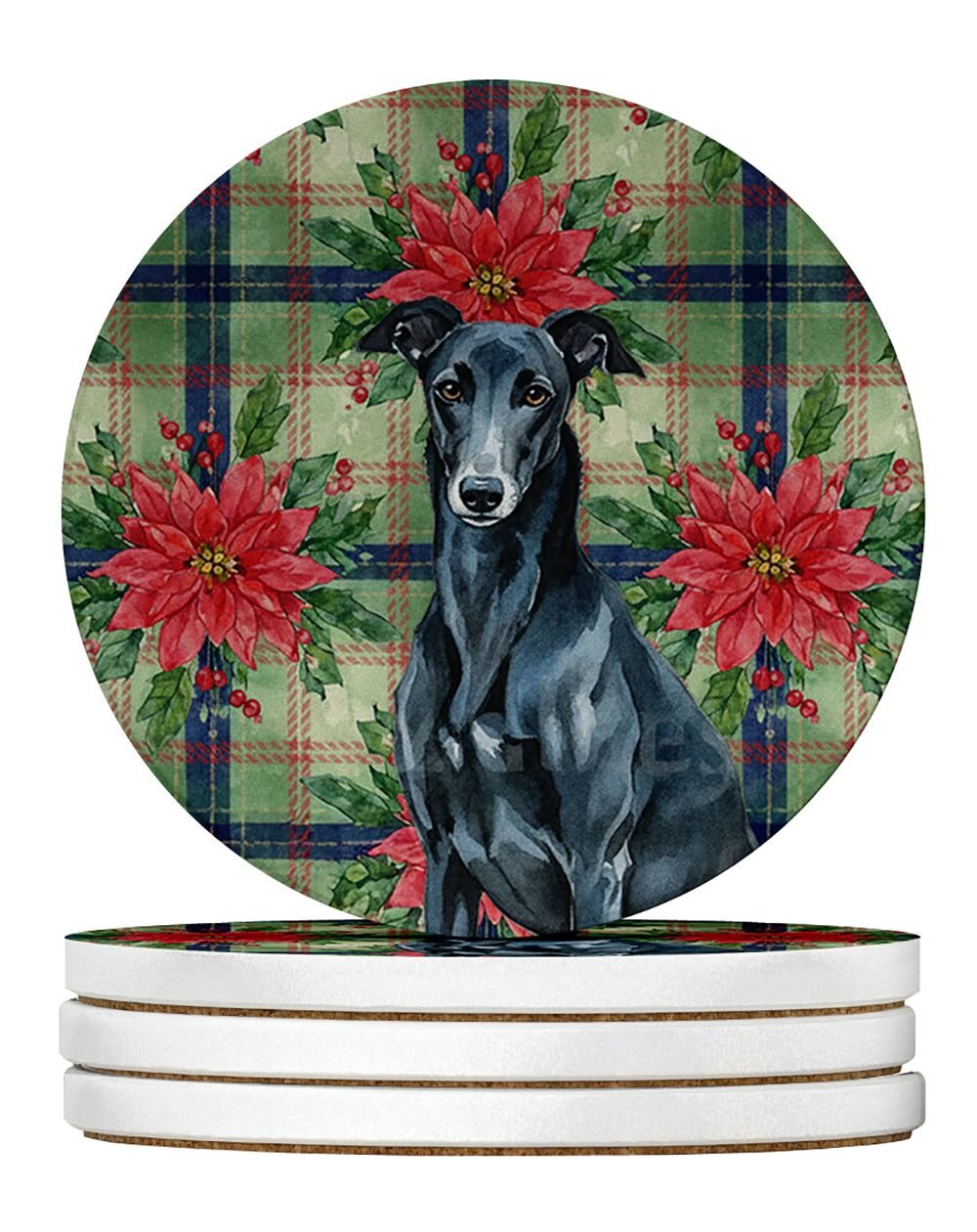 Black Greyhound Christmas PoinsettIas Large Sandstone Coasters Pack of 4 Absorbent Round Coasters Decor Gifts for Men or Women, 4 in, Multicolor