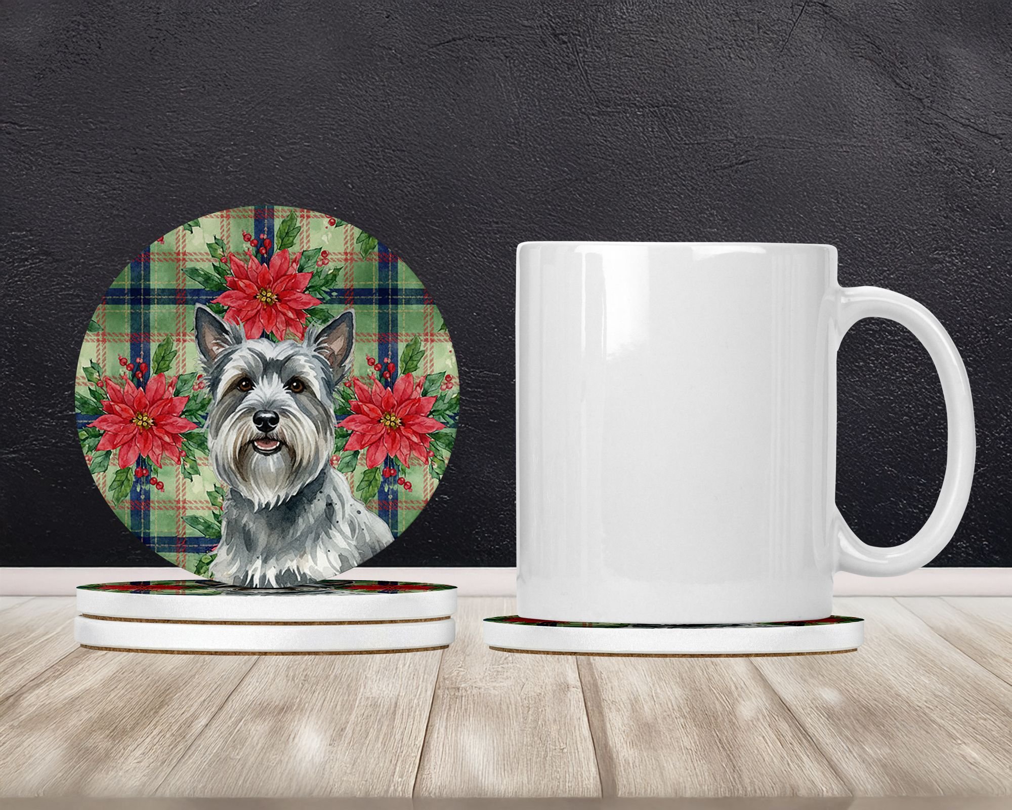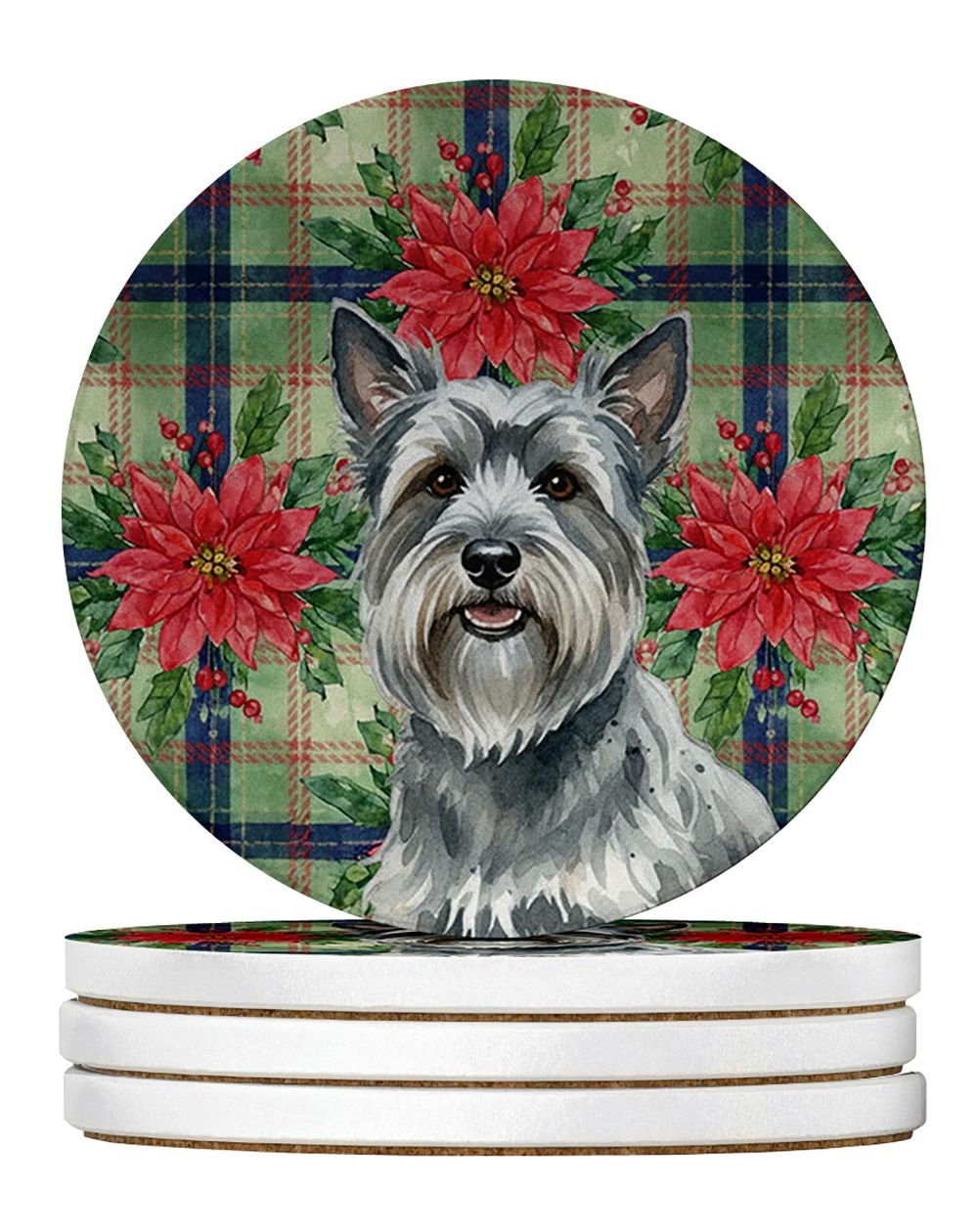 Home > Gray Skye Terrier Christmas PoinsettIas Large Sandstone Coasters Pack of 4 Absorbent Round Coasters Decor Gifts for Men or Women, 4 in, Multicolor