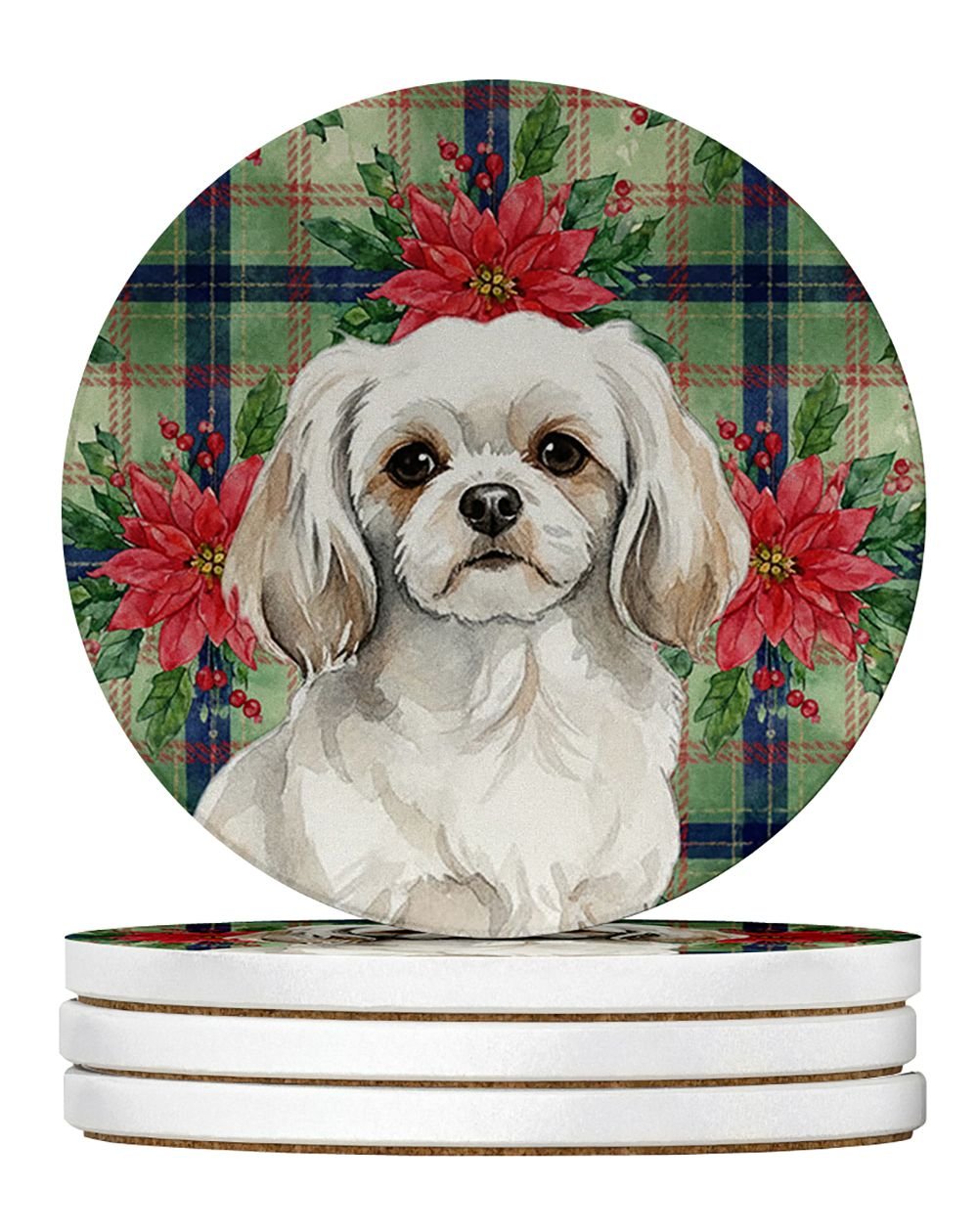 Home > White Tibetan Spaniel Christmas PoinsettIas Large Sandstone Coasters Pack of 4 Absorbent Round Coasters Decor Gifts for Men or Women, 4 in, Multicolor