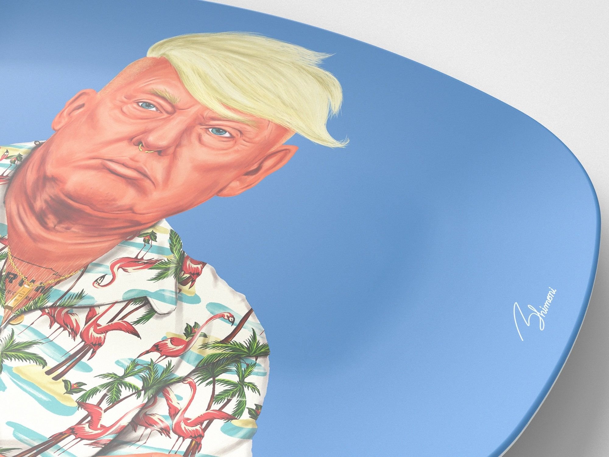 "Think big and kick ass."Donald TrumpThis unique 10"x14" DecoWare® platter presents a lively and current interpretation of Donald Trump, mixing his notable persona with an imaginative and light-hearted remake. Suitable for collectors, political commentators, or as a striking conversational accessory. P R O D U C T D E T A I L S // 10"x14" Oval Serving Platter, 0.75" Tall// Microwave safe// Oven-safe up to 250 degrees Fahrenheit for 1 hour// Dishwasher-safe// Molded from DecoWare® - a high performance medical-grade polymer// Safe for food contact// Contains no melamine, BPA's, formaldehyde or other harmful chemicals// Recyclable// 100% Made in the U.S.A.// Durable satin finish// Unbreakable with normal use  F I N E P R I N T Due to the many variations in monitors, the actual colors on each plate and platter may appear slightly different than the colors that appear on your monitor. They are awesome in real life!Each unique Platter is made to order. R E T U R N S & R E F U N D S Returns and exchanges are accepted within 14 days of delivery. If there are any problems with your order, please feel free to message me and I will help any way possible. W E L O V E O U R C U S T O M E R S Thank you so much for browsing our listings, don't hesitate to message with any questions or concerns. We strive to please you!