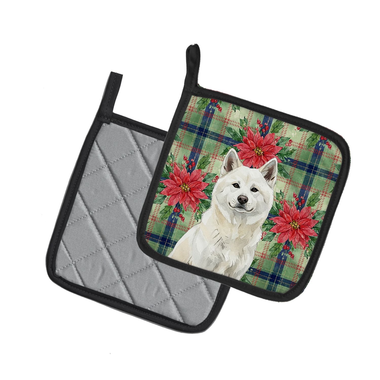 Home > White Akita Christmas PoinsettIas Pair of Pot Holders Pair 7.5x7.5 Quilted Insulated Hot Pads Decorative Kitchen Gift Made in USA