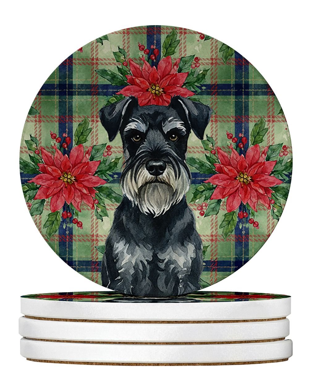 Home > Standard Schnauzer Christmas PoinsettIas Large Sandstone Coasters Pack of 4 Absorbent Round Coasters Decor Gifts for Men or Women, 4 in, Multicolor