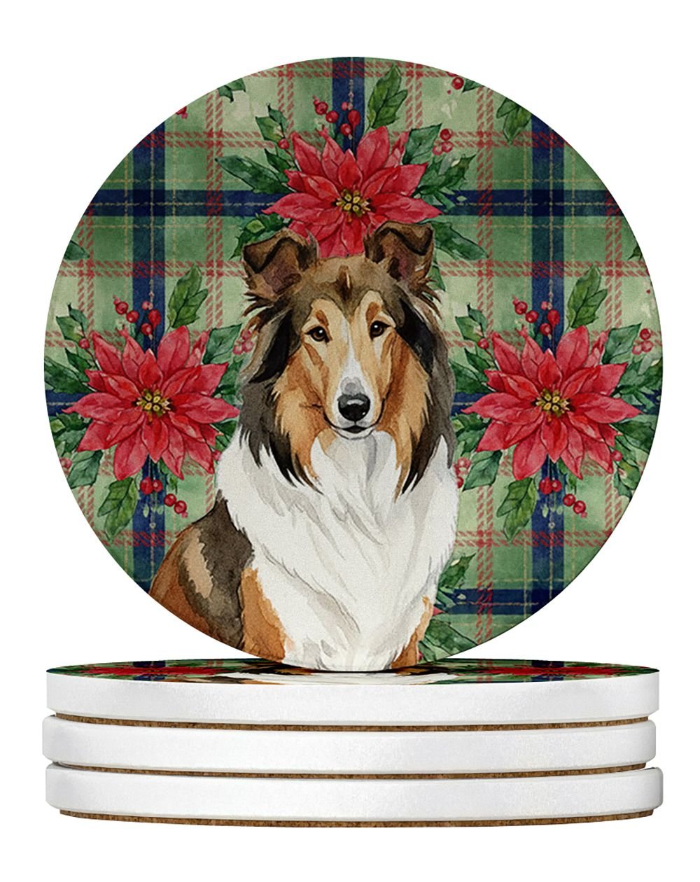 Home > Sable Collie Christmas PoinsettIas Large Sandstone Coasters Pack of 4 Absorbent Round Coasters Decor Gifts for Men or Women, 4 in, Multicolor