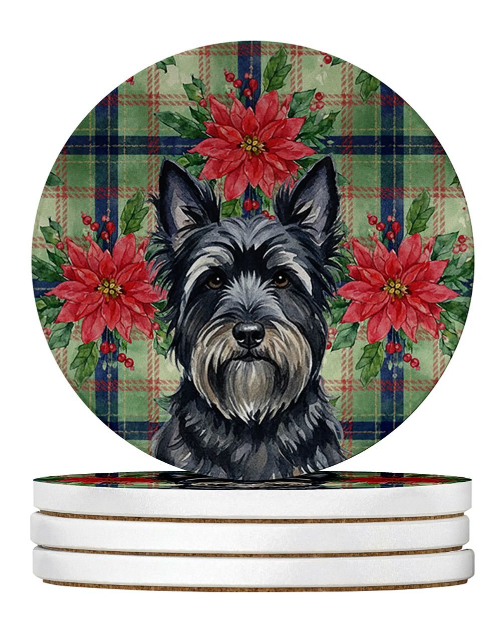 Home > Black Skye Terrier Christmas PoinsettIas Large Sandstone Coasters Pack of 4 Absorbent Round Coasters Decor Gifts for Men or Women, 4 in, Multicolor