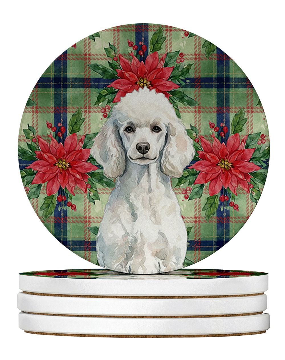 Home > Standard White Poodle Christmas PoinsettIas Large Sandstone Coasters Pack of 4 Absorbent Round Coasters Decor Gifts for Men or Women, 4 in, Multicolor