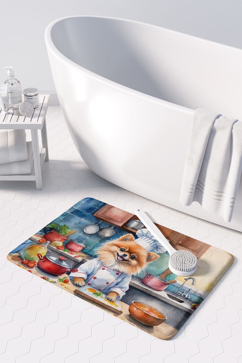 Pomeranian The Chef Memory Foam Kitchen Mat Machine Washable Anti-Fatigue Mat Cushion Comfort Bath Mat or Kitchen Rug