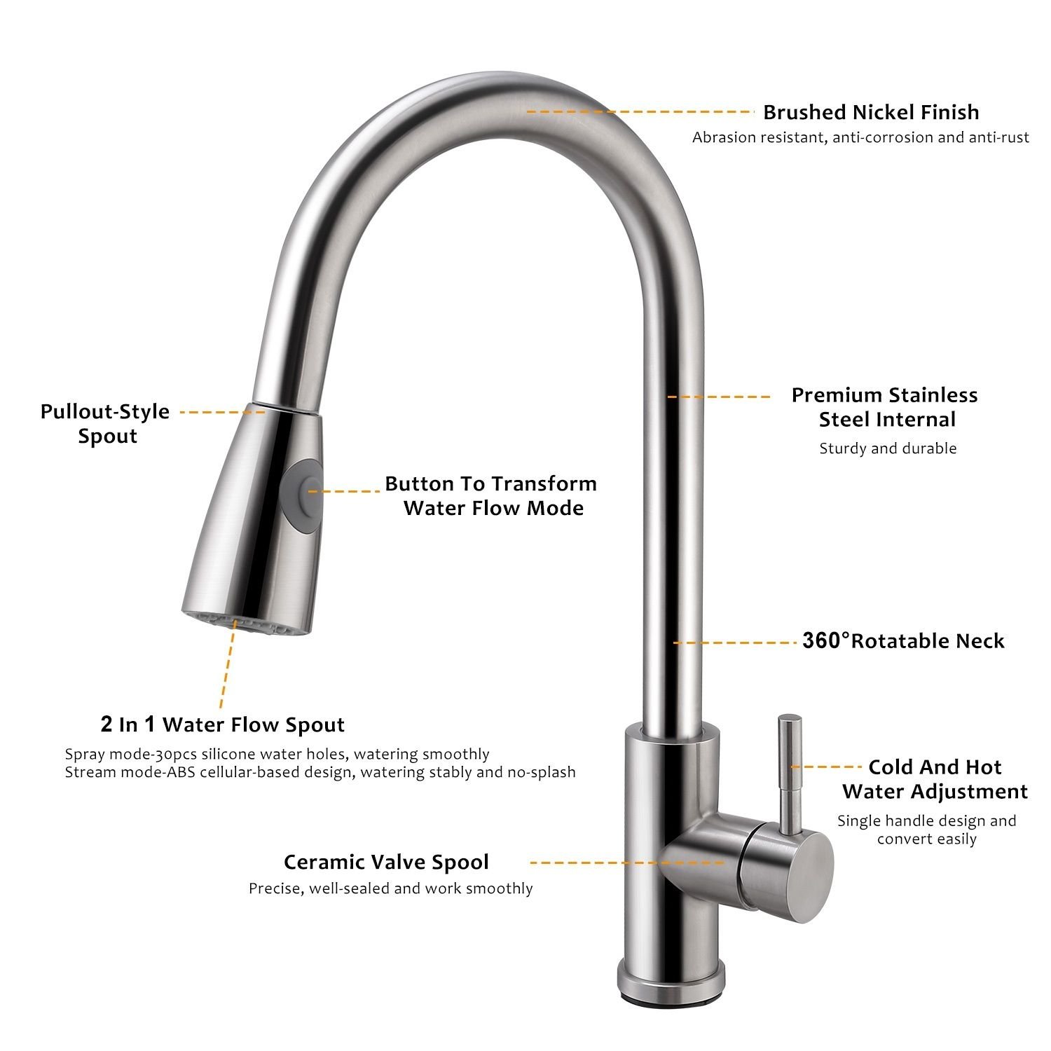 Kitchen Faucets Single Handle Kitchen Sink Faucet Brushed Nickel Stainless Steel Pulldown Head Faucet Kitchen Faucets Single Handle Kitchen Sink Faucet Brushed Nickel Stainless Steel Pulldown Head Faucet Kitchen Faucets Single Handle Kitchen Sink Faucet Brushed Nickel Stainless Steel Pulldown Head Faucet