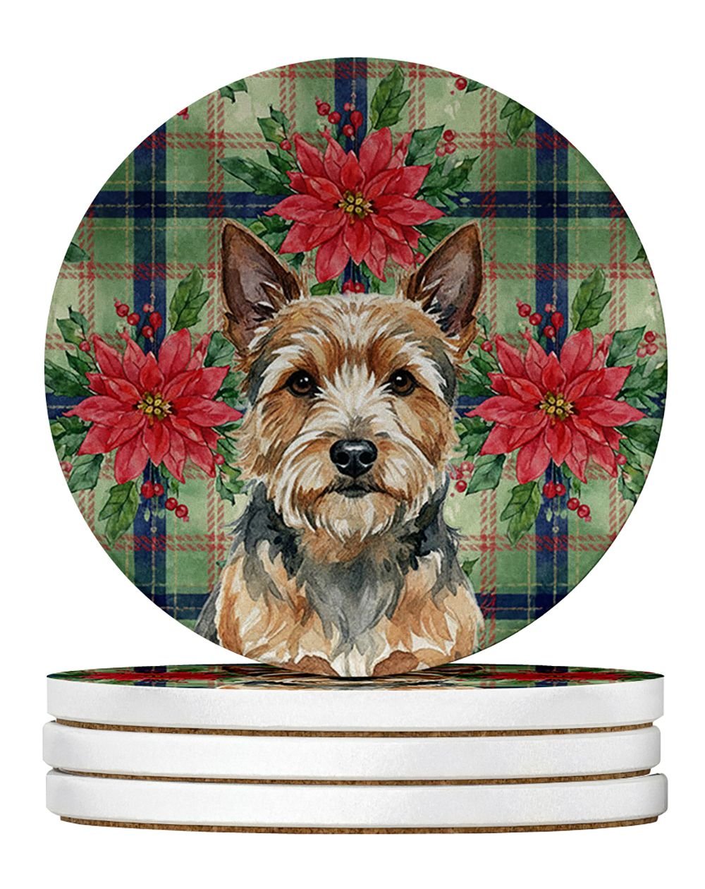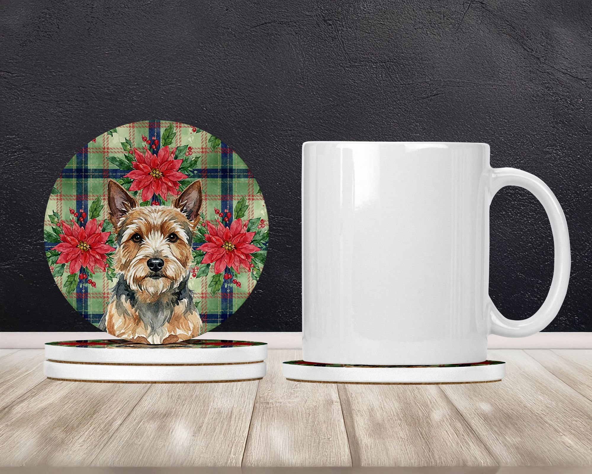 Norwich Terrier Christmas PoinsettIas Large Sandstone Coasters Pack of 4 Absorbent Round Coasters Decor Gifts for Men or Women, 4 in, Multicolor