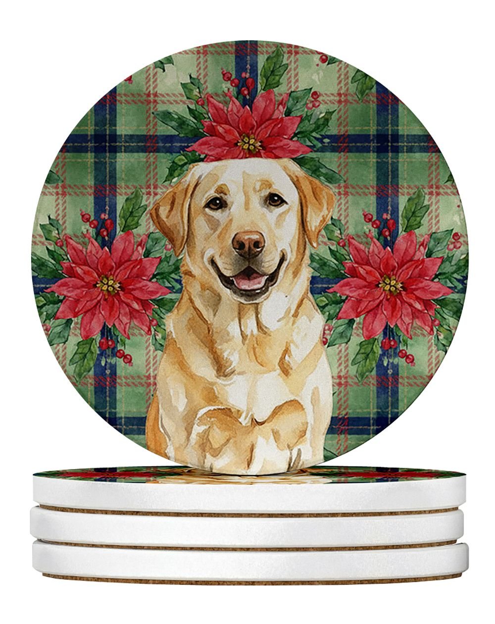 Home > Yellow Labrador Retriever Christmas PoinsettIas Large Sandstone Coasters Pack of 4 Absorbent Round Coasters Decor Gifts for Men or Women, 4 in