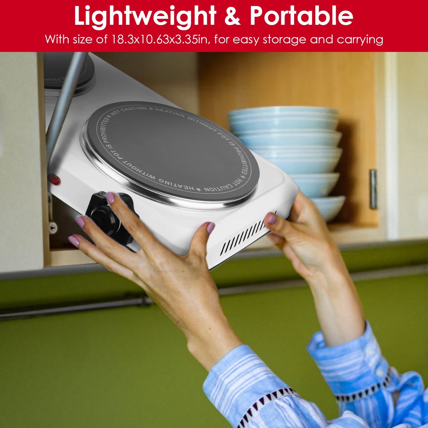 Thermostat Temp Control & Easy Cleaning: The hot plate will auto shut off and the indicator light in front of the enclosure will be extinguished when the preset/desired temperature is reached. When it is lower than the temperature you set, the light turns red to indicate the cooktop is warming or heating. Just simply wipe the non-electrical parts with a damp sponge or half-wet cloth for easy cleaning after cooling down completely and plug removed.