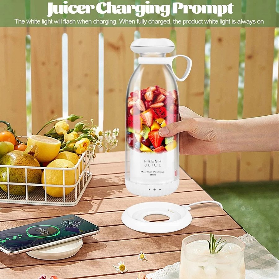 2.This is a powerful High-speed bottle blender having rotating speed 20000 rpm and 4 stainless extra sharp extraction blades. Our bottle blender has a powerful 7.4V motor, which can get a cup of nutritious smoothies in 30 seconds.